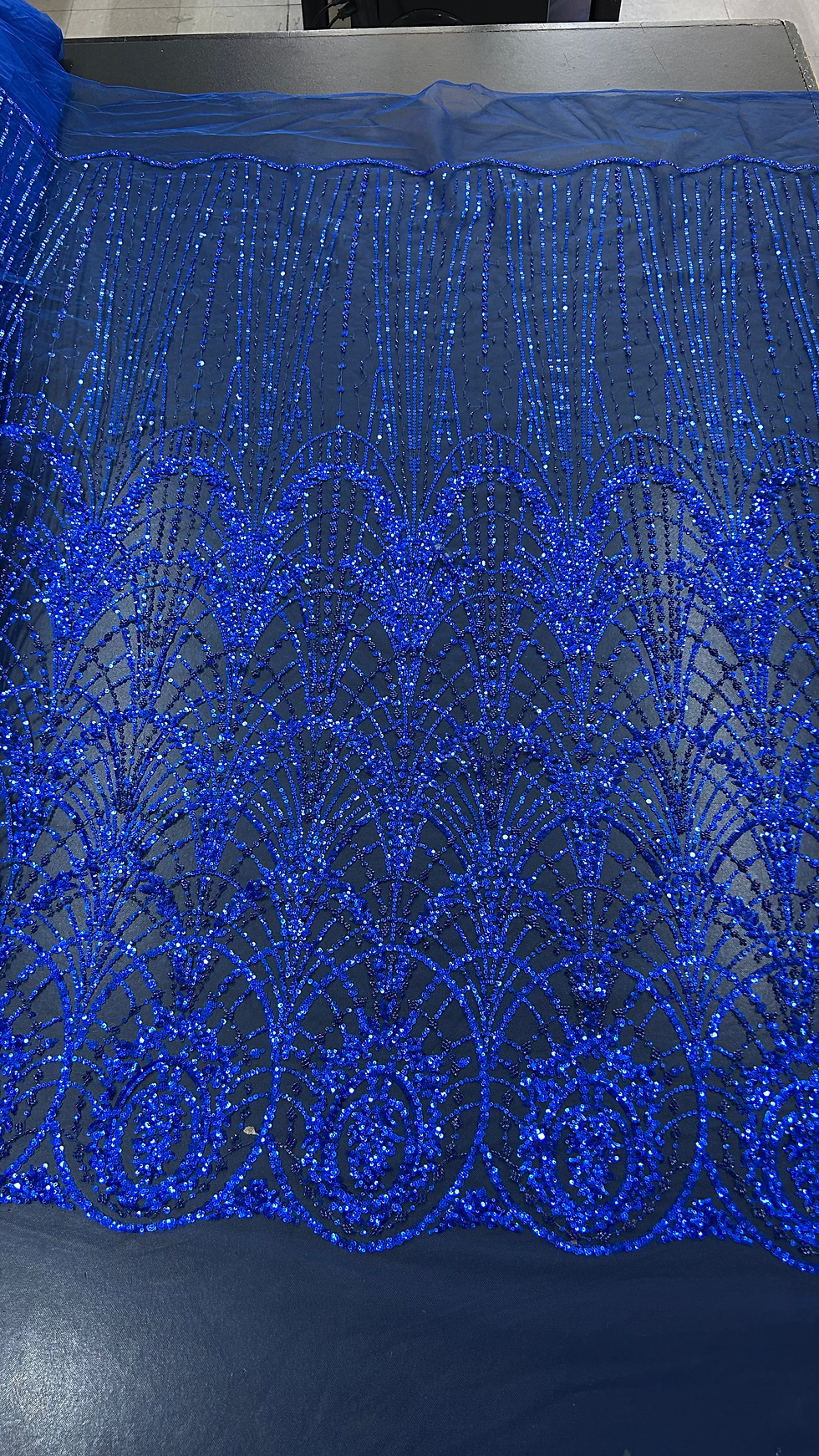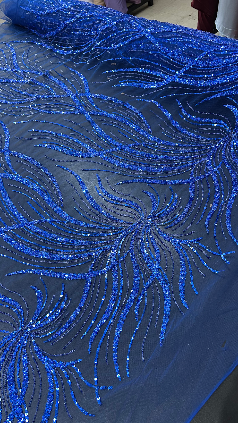 TUL BORDADO FLORES AZUL PLUMBAGO
