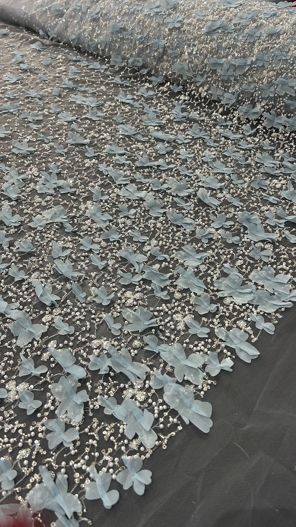 TUL BORDADO FLORES 3D AZUL PLUMBAGO