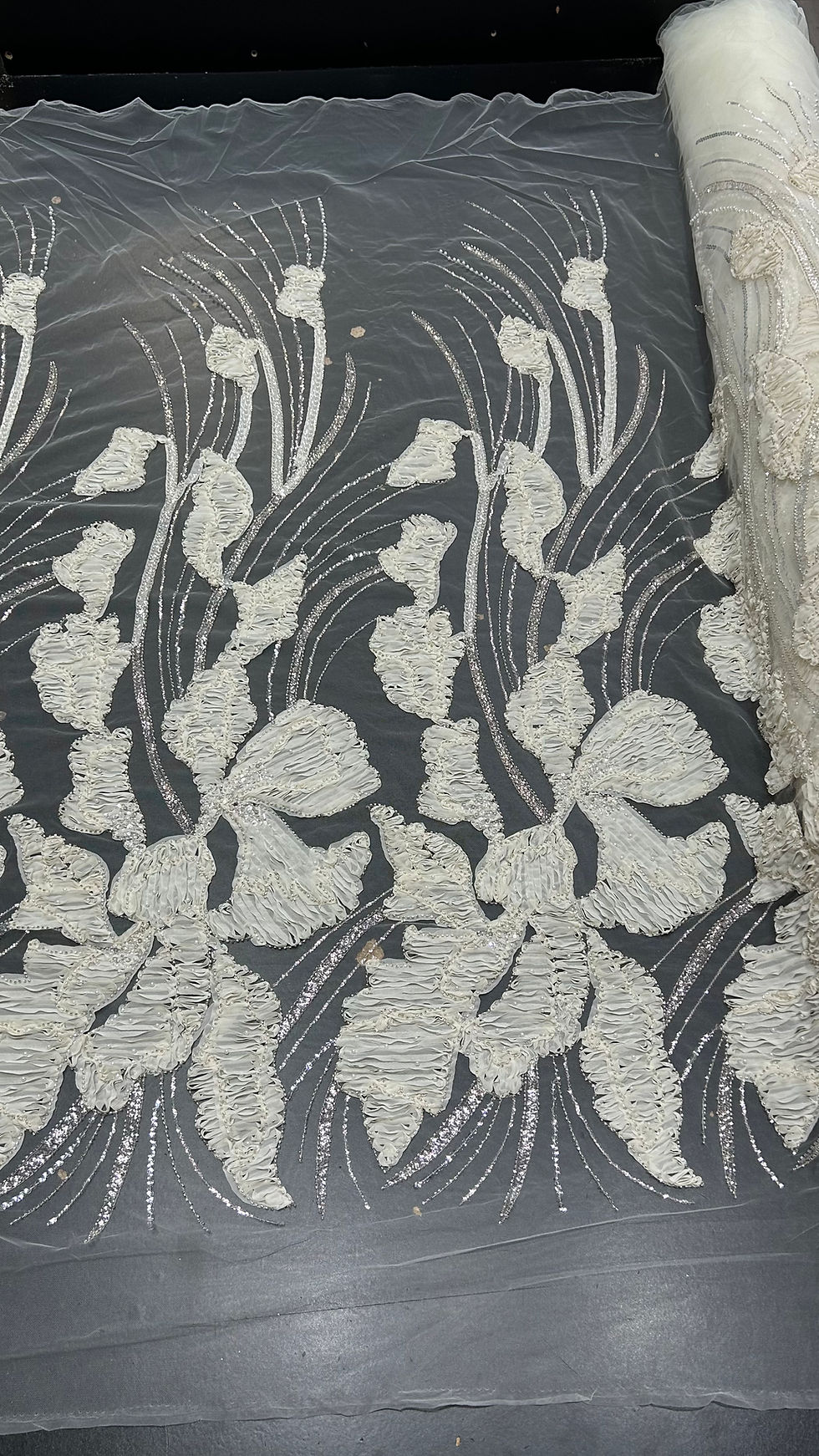 TUL BORDADO FLORES 3D OFF WHITE
